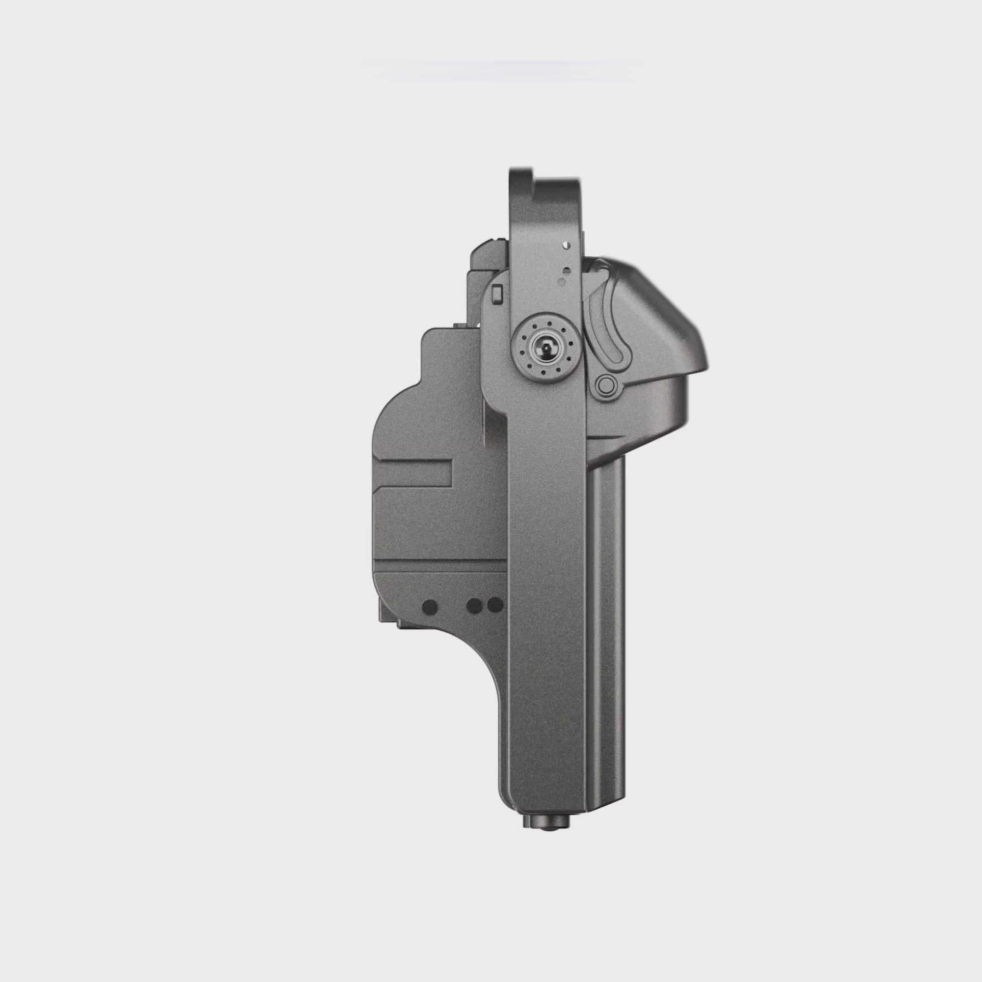 המהפכה האמיתית בדגם זה טמונה במערך השימור והנעילה. הנרתיק מצויד במנגנון אבטחה מגנטי עוצמתי (Magnetic Retention) הנועל את הנשק למקומו באופן אוטומטי ומיידי עם הכנסתו. במקביל, שחרור הנשק מתבצע דרך מנגנון אגודל אינטואיטיבי (Thumb Release Mechanism) המאפשר שליפה חלקה, טבעית ומהירה במיוחד תחת לחץ. שילוב זה מבטיח שהנשק יישאר מאובטח לחלוטין גם בפעילות עצימה או בניסיונות חטיפת נשק, מבלי לעכב את הלוחם ברגע האמת.